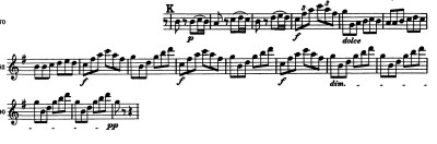 I’ve actually taken this a step further with the Mendelssohn Scherzo excerpt – I’ve been practicing it in 2/8 time. Huh? You can stop scratching your head now. I’ll explain…basically, instead of thinking of the excerpt being written like this:
