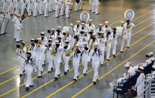 Once we got there we were greeted by RDCs (Recruit Division Commanders…Navy’s version of “drill sergeants”) yelling and cursing at us. It was pretty shocking how they didn’t let anything hold them back with regards to insults…but I guess that’s how it works in any military boot camp! I won’t bore you with details, but that night there was a lot of standing in lines for extended periods of time and also sitting and doing nothing at all for extended periods of time. The latter was hardest because we had to stay awake all night…and if you got caught sleeping it was bad news! It’s much harder to fall asleep when you are standing up. Anyways, I ended up getting put into a special performing division…but the catch was that they were a week ahead so I had to catch up quickly! A lot of rules I had to learn the hard way…which was getting yelled at when I did something wrong. I already have a pretty thick skin, but it definitely got thicker those first couple weeks! But it got better and better the more time passed. I am glad that I got put in the performing division though; it gave me a chance to play at least once a week! And it was a nice escape every Saturday. It was also fun to perform at graduation!
