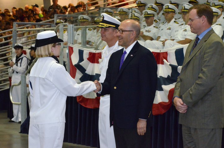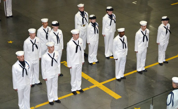 I also won the Academic Award at boot camp, which meant I scored really high on the written exams. I didn’t try that hard so it surprised me when I found out that I won. I also didn’t realize how big of a deal it was! At graduation I had to salute the Commanding Officer and shake hands with three other people. After the graduation ceremony I was awarded a certificate and a coin and got to talk with the CO, XO, and the Command Master Chief of RTC (Recruit Training Command), among others! It was really cool. Only 5 of us out of 500 got that privilege! Here’s some pictures that I scrounged up from the interwebs: