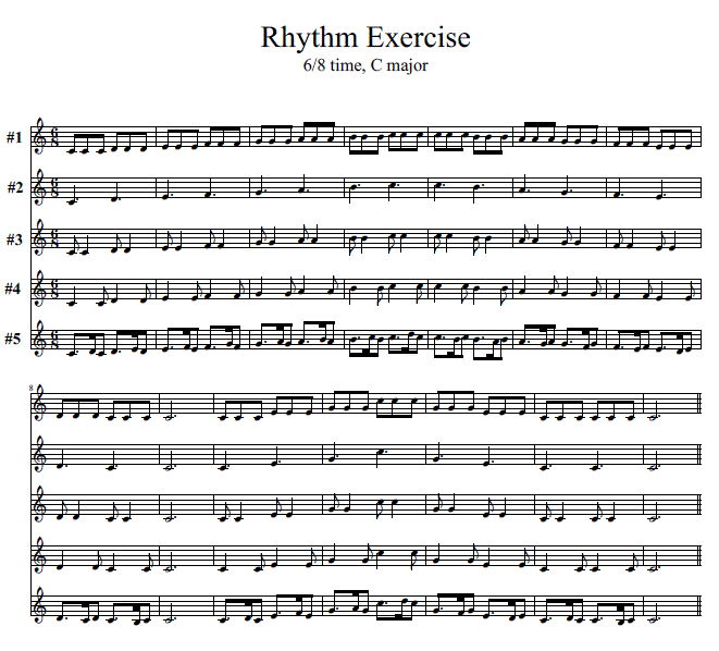 One of my student recently was having trouble learning 6/8 rhythm. He had been playing in duple since he started clarinet (I started him as a beginner), and so it was somewhat of a task to start dividing in three instead of two. I created this little exercise that we can do during lessons: