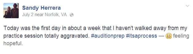 The first couple weeks of this phase were fine. But then the last couple weeks, when I started to get these excerpts up to tempo, that’s when I started to get aggravated. Most of the time I would leave my practice session totally pissed off and frustrated. I would spend 20 minutes just on one measure sometimes. It was a welcome feeling when that wasn’t the case.