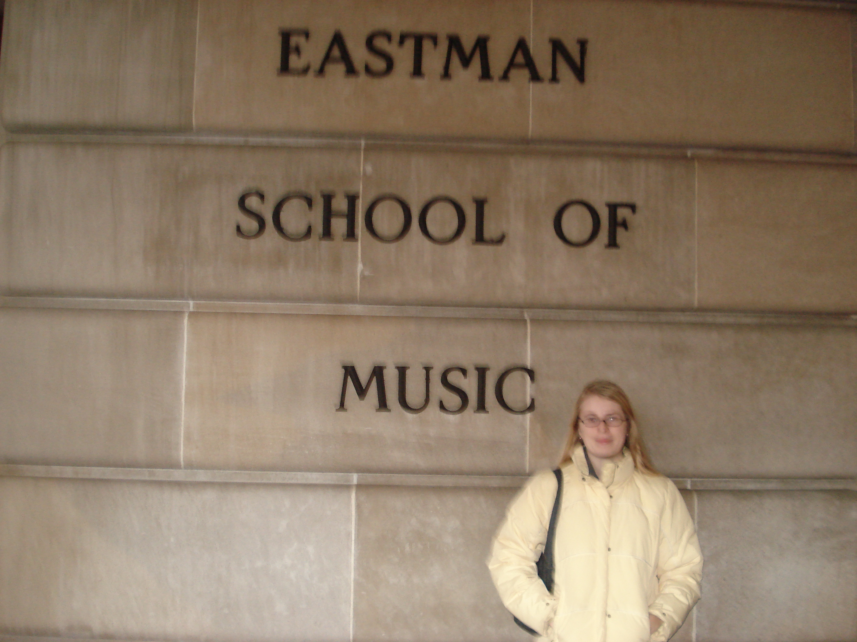 Eastman School of Music in Rochester, NY where she studied with Kenneth Grant and Robert Dilutis. She was the recipient of a Graduate Award, where she was able to teach private clarinet lessons to students at the University of Rochester. She also had the unique opportunity to study chamber music with the renowned collaborative pianist Jean Barr, and Ying Quartet violist, Phillip Ying. She also had the privilege of playing in the ensembles Musica Nova, Eastman Philharmonia, and the world famous Eastman Wind Ensemble. She spent two years at Eastman, graduating in May of 2009 with a Master of Music in clarinet